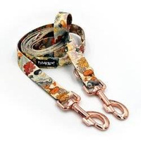 Dog Leash Forest Treasures width 2.5 cm, 1" wide. pink gold, big snap hook 8 cm