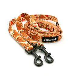 Long Dog Leash Cinnamon Gingerbread Psiakrew width 2 cm (0.78"), black snap hook 6 cm