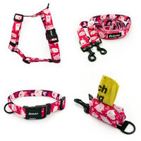ZUBEHÖRSATZ. Mittlerer Hund. Psiakrew Piggy in Love Serie; Halsband, Geschirr, Leine, Etui für Kotbeutel