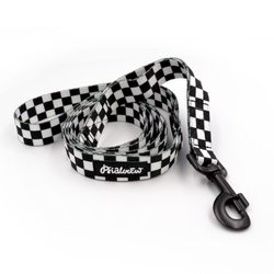 Szach i Mat, a potem na spacer. Klasyczny wzór w czarno-białą szachownicę. Autorski projekt Psiakrew. Akcesoria dla Psów z motywem szachownicy - dla miłośników szachów i wyścigów Formuły 1 :)