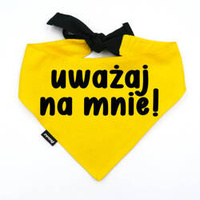 Bandana dla Psa UWAŻAJ NA MNIE! Psiakrew, personalizowana wiązana chusteczka, żółta bandana
