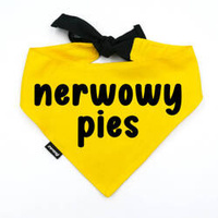 Bandana ostrzegawcza dla Psa NERWOWY PIES Psiakrew, personalizowana chusteczka, żółta bandana