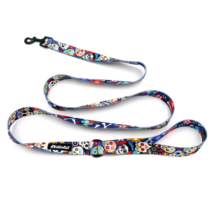 Dog Leash Dia de los Muertos width 2.5 cm, 1" wide, black snap hook 6 cm