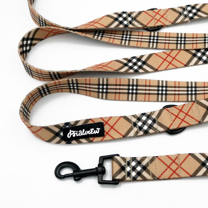 Long walking dog leash with tape width of 2,5 cm. It has a snap hook on each side, giving you the ability to adjust the length of the leash.