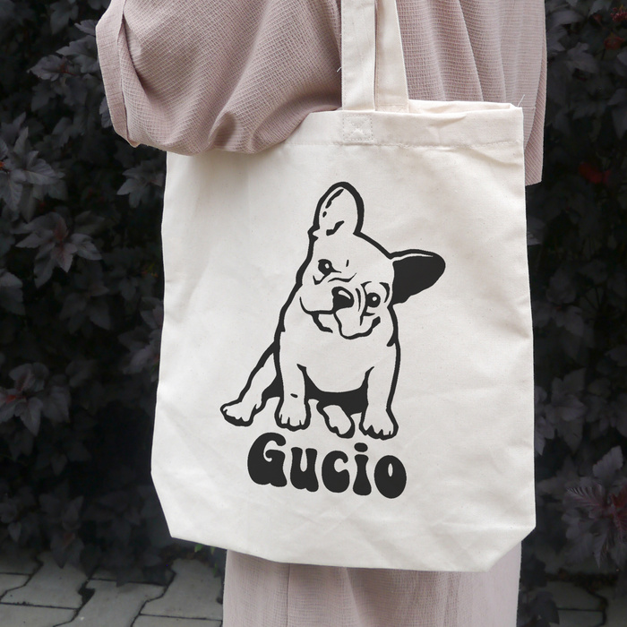 Add charm to your everyday shopping or walks with our stylish cotton bag featuring a French Bulldog design! This tote is not only a practical accessory but also a great way to show your love for dogs. Personalize the bag further by choosing the color of the design and adding your dog's name or another custom phrase!