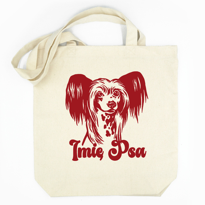 Personalized ECO Cotton Bag – Chinese Crested Dog Ecru with Name – Psiakrew Tote Bag