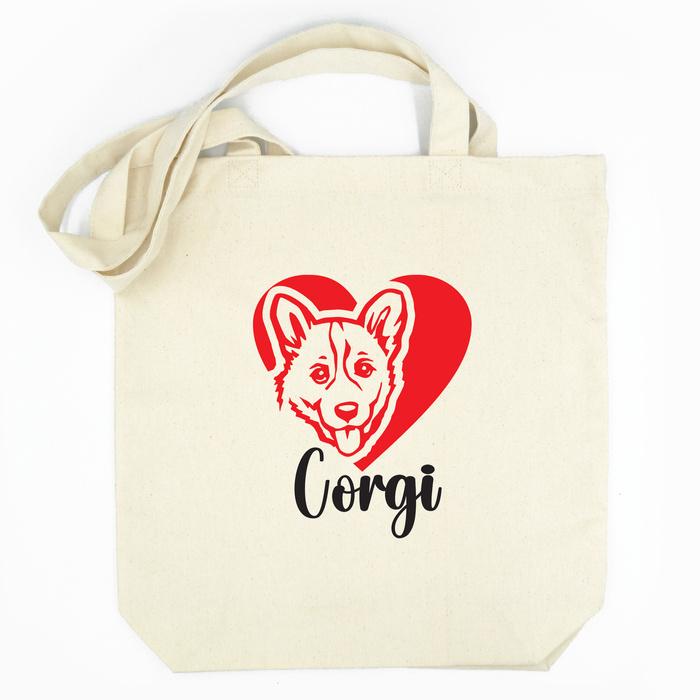 A stylish and practical tote bag made of high-quality cotton, perfect for shopping, work, or a walk with your pet. The front features an eye-catching print of a Welsh Corgi Pembroke dog inside a red heart, along with a decorative black inscription of your choice. This bag is not only a practical accessory but also a way to show your love for your favorite breed. An ideal gift for any Welsh Corgi Pembroke owner or dog lover.