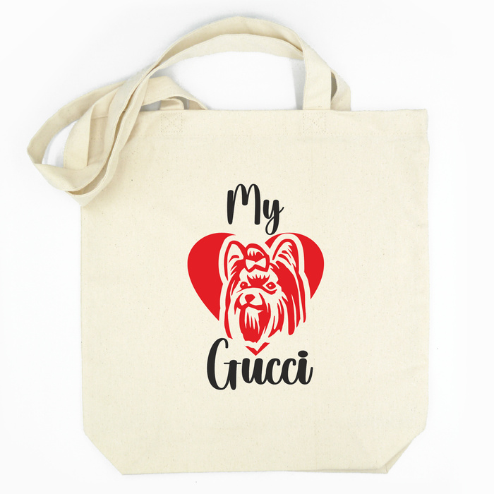 A stylish and practical tote bag made of high-quality cotton, perfect for shopping, work, or a walk with your pet. The front features an eye-catching print of a Yorkshire Terrier dog inside a red heart, along with a decorative black inscription of your choice. This bag is not only a practical accessory but also a way to show your love for your favorite breed. An ideal gift for any Yorkshire Terrier owner or dog lover.