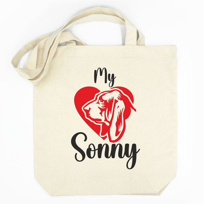 A stylish and practical tote bag made of high-quality cotton, perfect for shopping, work, or a walk with your pet. The front features an eye-catching print of a Basset Hound dog inside a red heart, along with a decorative black inscription of your choice. This bag is not only a practical accessory but also a way to show your love for your favorite breed. An ideal gift for any Basset Hound owner or dog lover.