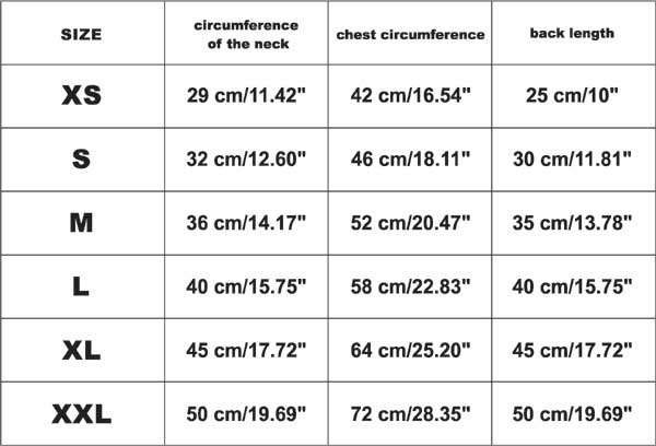 To choose the right sweatshirt size, measure the Dog and adjust its dimensions to the sweatshirt dimensions given in the table.