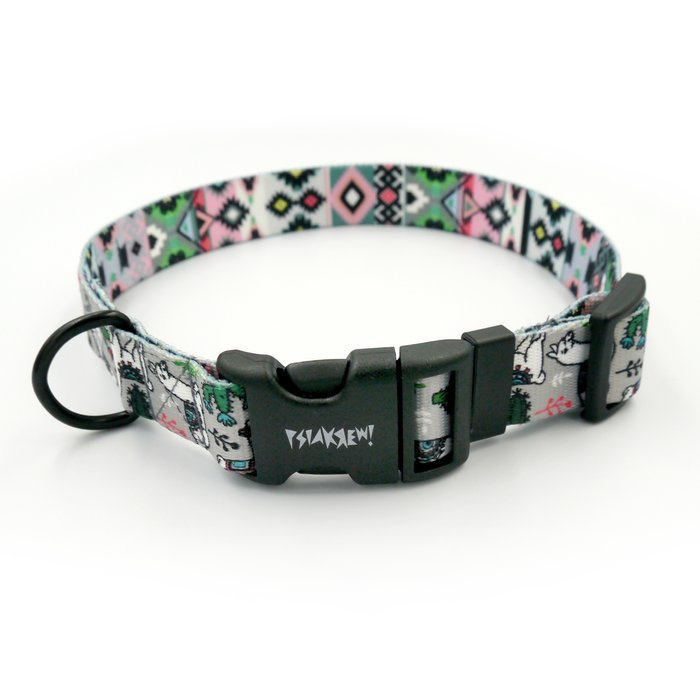 Dog Collar Psiakrew Grey Llama 2.5 cm, 1" wide, black extras