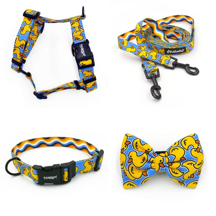 ZUBEHÖRSATZ für einen kleinen Hund Ducky Duck Psiakrew -Serie; Halsband, Geschirr, Leine, Bandana