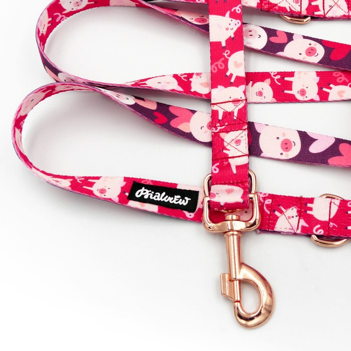 Lange Hundeleine abnehmbar verstellbar Piggy in Love Psiakrew Design Breite 2,5 cm, Karabiner roségold