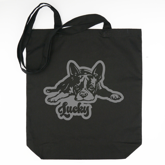 Verleihe deinen täglichen Einkäufen oder Spaziergängen das gewisse Etwas mit unserer stylischen Baumwolltasche mit einem Motiv eines Boston Terrier! Diese Tasche ist nicht nur ein praktisches Accessoire, sondern auch eine tolle Möglichkeit, deine Liebe zu Hunden auszudrücken. Personalisiere die Tasche zusätzlich, indem du die Farbe der Applikation und den Namen deines Hundes oder einen anderen Wunschtext auswählst!