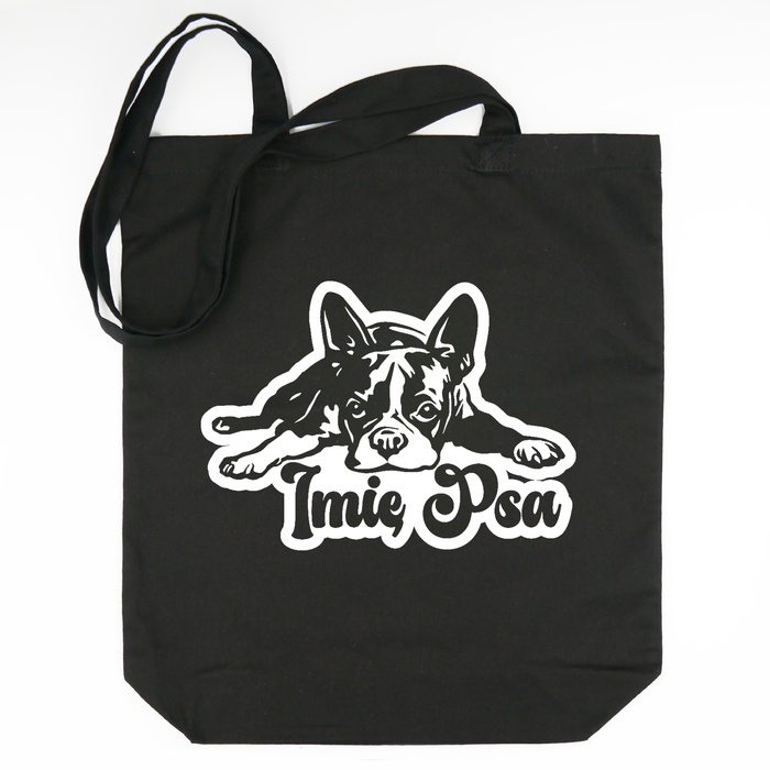 Personalisierte ECO-Baumwolltasche – Boston Terrier in Schwarze mit Namen – Psiakrew Tragetasche