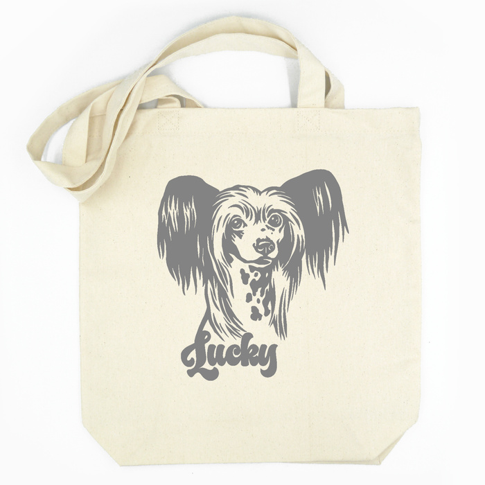 Personalisierte ECO-Baumwolltasche – Chinesischer Schopfhund in Ecru mit Namen – Psiakrew Tragetasche Grau