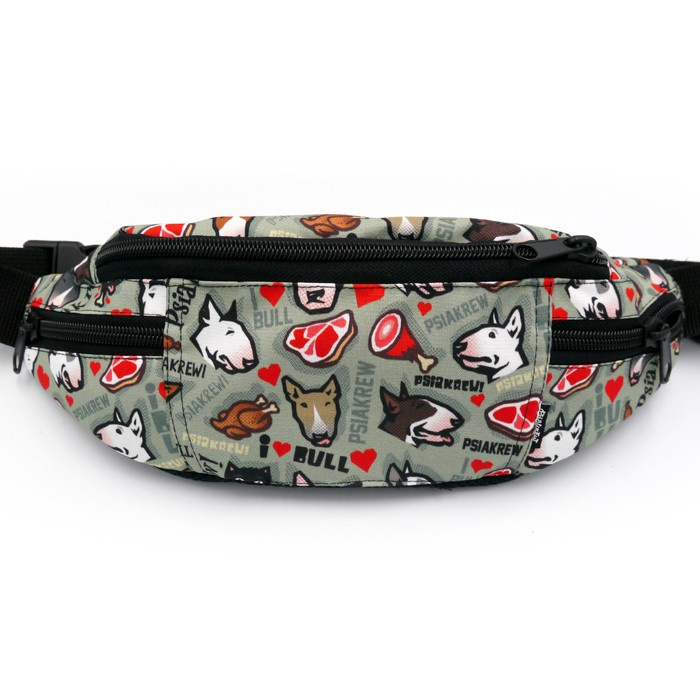 Saszetka na biodra wzór Pies Bulterier Smakosz Nerka spacerowa Szara z motywem bulterier Psiakrew