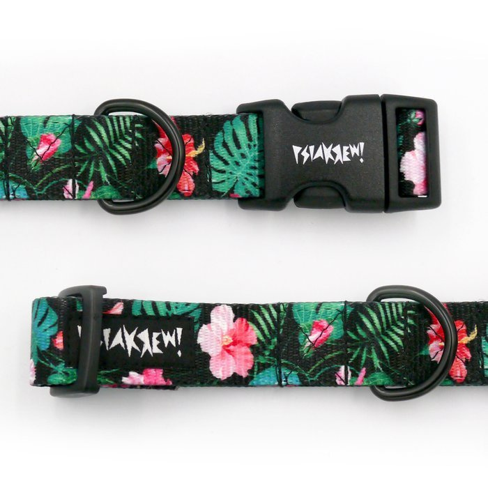 Obroża dla psa regulowana klamra zatrzaskowa Tropical Monstera Psiakrew 2,5 cm czarne okucia