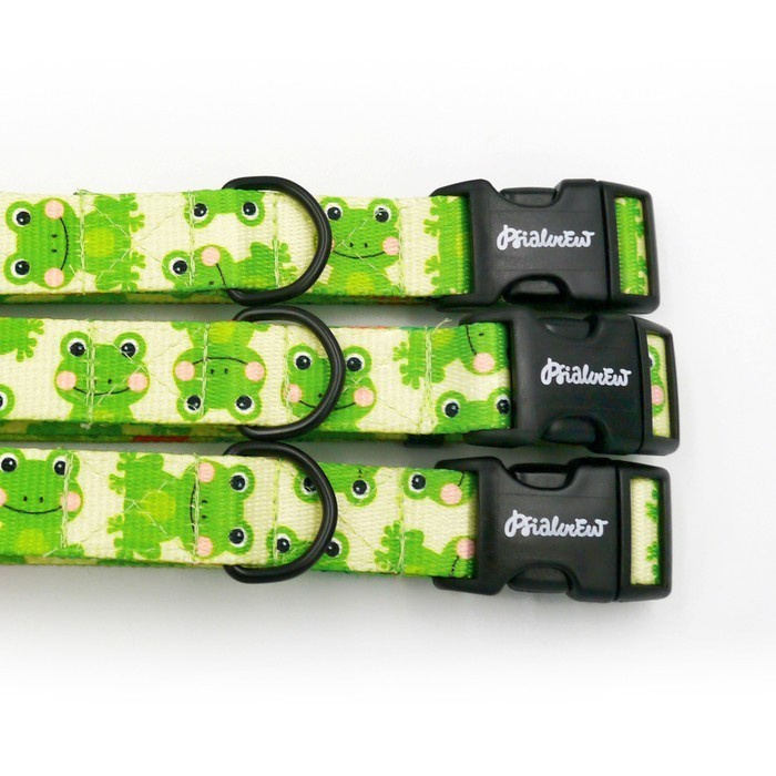Obroża dla Psa Regulowana Zielone Żabki Psiakrew, wąska 2 cm, dla mniejszych psów i szczeniaków