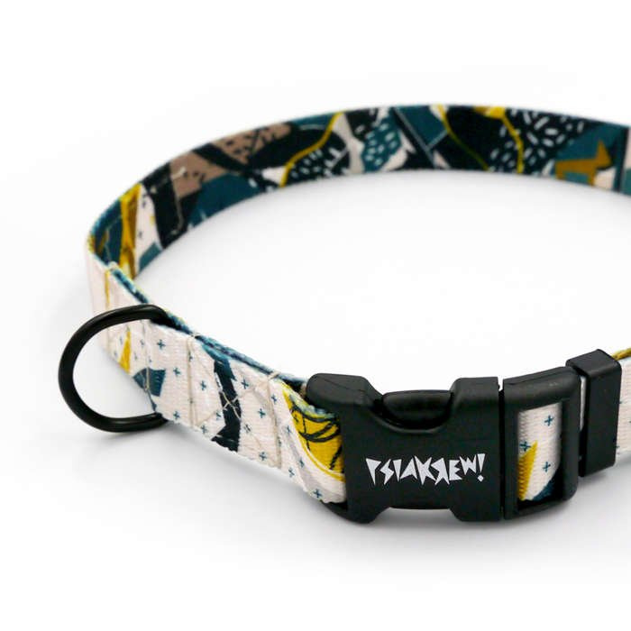 Designerska obroża z kolorowej taśmy; zapinana na wyprofilowany do kształtu szyi psa zatrzask, klamerkę