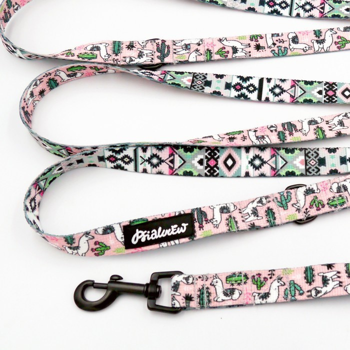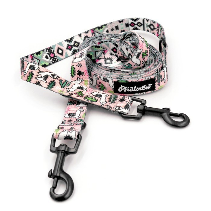 Smycz Dla Psa Przepinana Regulowana Lama Różowa szerokość 2 cm, czarny karabińczyk 6 cm