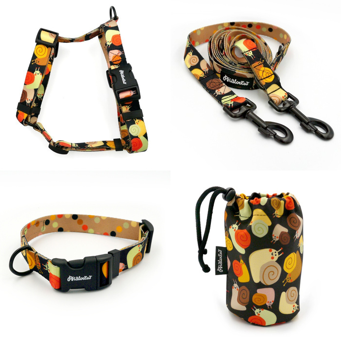 ZESTAW AKCESORIÓW. Pies duży. Seria Rodzinka Ślimaków Psiakrew; Obroża, Szelki, Smycz, Saszetka