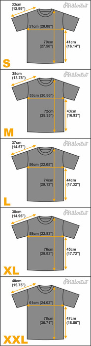 Aby dobrać odpowiedni rozmiar można wykorzystać własną koszulkę; rozłożyć ją "na płasko" na stole, lub podłodze. Za pomocą metra krawieckiego zmierzyć długość i szerokość swojej koszulki. Pamiętaj, że szerokość należy pomnożyć przez 2 jeśli chcesz uzyskać obwód klatki piersiowej. Długość koszulki mierzymy z tyłu od góry w miejscu wszycia kołnierza, lub ściągacza, do samego dołu koszulki.