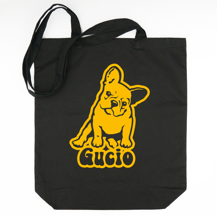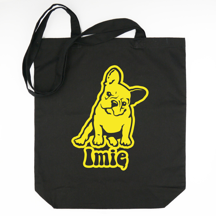 Torba bawełniana ECO personalizowana Buldog Francuski czarna z imieniem - tote bag Psiakrew Yellow