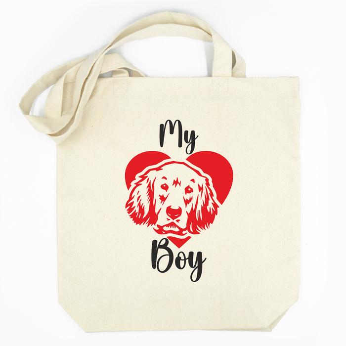 Stylowa i praktyczna torba wykonana z wysokiej jakości bawełny, idealna na zakupy, do pracy czy na spacer z pupilem. Na przodzie znajduje się efektowny nadruk przedstawiający wizerunek psa rasy Golden Retriever w czerwonym sercu, oraz czarny, ozdobny napis o dowolnej treści. Ta torba to nie tylko praktyczny dodatek, ale także sposób na pokazanie miłości do swojej ulubionej rasy. Idealny prezent dla każdego właściciela Golden Retriever lub fana psów.