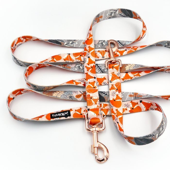 Długa Smycz Dla Psa Przepinana Regulowana Foxy Lady taśma 2,5 cm, karabińczyk różowe złoto