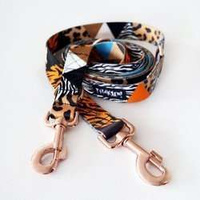 Dog Leash Wild Animals width 2.5 cm, 1" wide, pink gold, big snap hook 8 cm